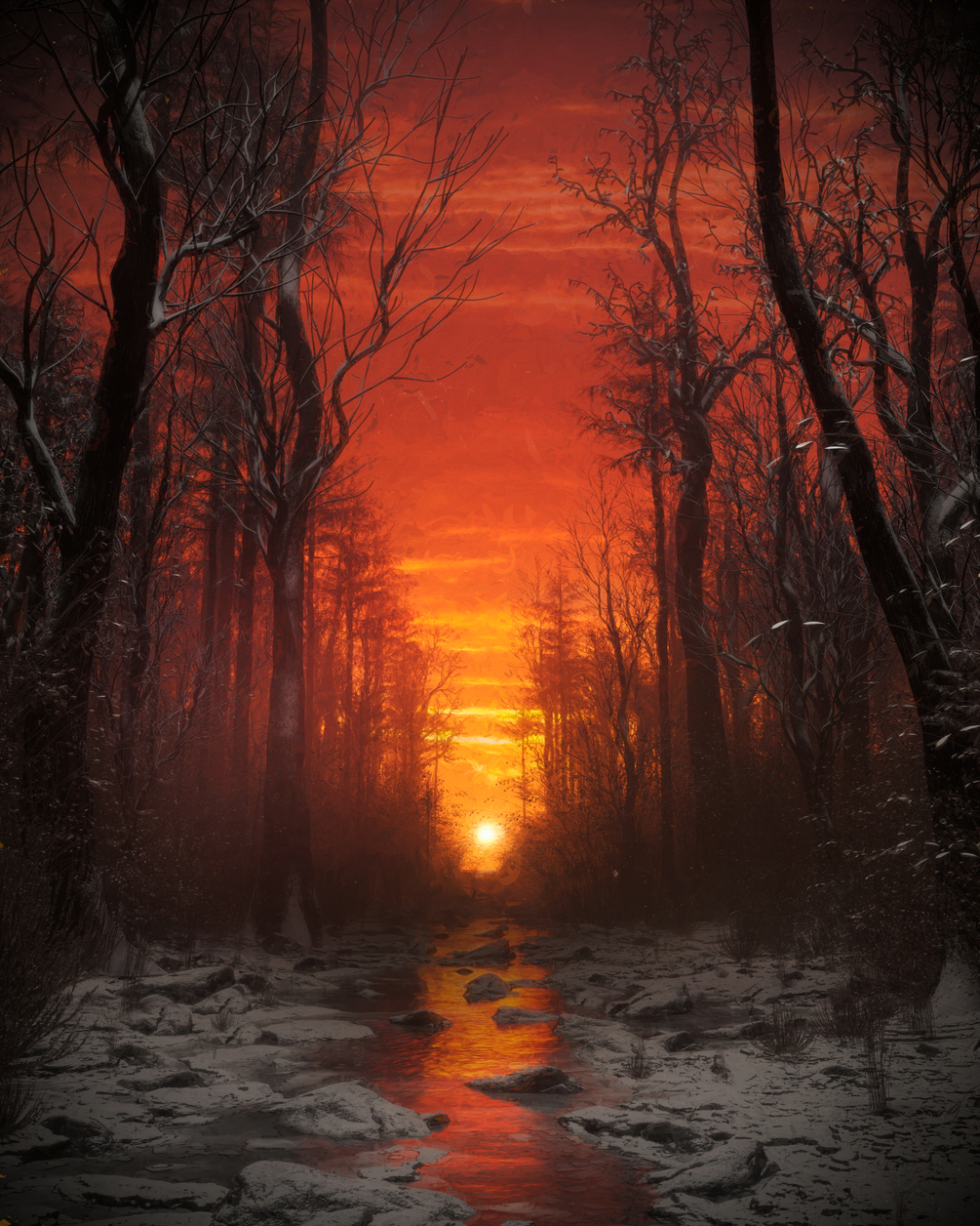 One hour video walk through tutorial for C4D and Octane render, showing how to create this style image. Includes lots of tips and tricks for C4D and Octane, especially how to create the dusting of snow look technique, procedurally driven landscapes, and custom tree settings.